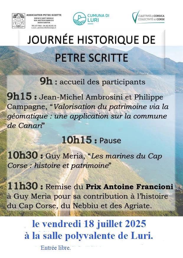 Journée historique de Petre Scritte, le vendredi 18 juillet 2025 à la salle polyvalente de Luri.